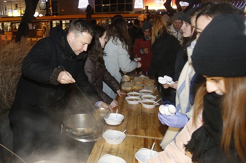 A 15 éves együttműködés keretében eddig több millió forint értékben, mintegy 20 ezer adag ételt osztottak ki a nélkülözőknek. Legutóbb december 5-én délután várták a meleg ételre vágyókat a Széna téren. Ez alkalommal mintegy 200 adag betyárlevest főztek a kollégium konyháján, az ételt az önkéntes diákok kínálták Láng Zsolt polgármester segítségével. Az eseményen részt vett Singer János, a kollégium igazgatója és Legény Béla önkormányzati képviselő is. Az ételosztáshoz rendszeresen csatlakozik a Príma Pék pékség, ahonnan mindig friss kenyér és péksütemény érkezik az egytálétel mellé.
